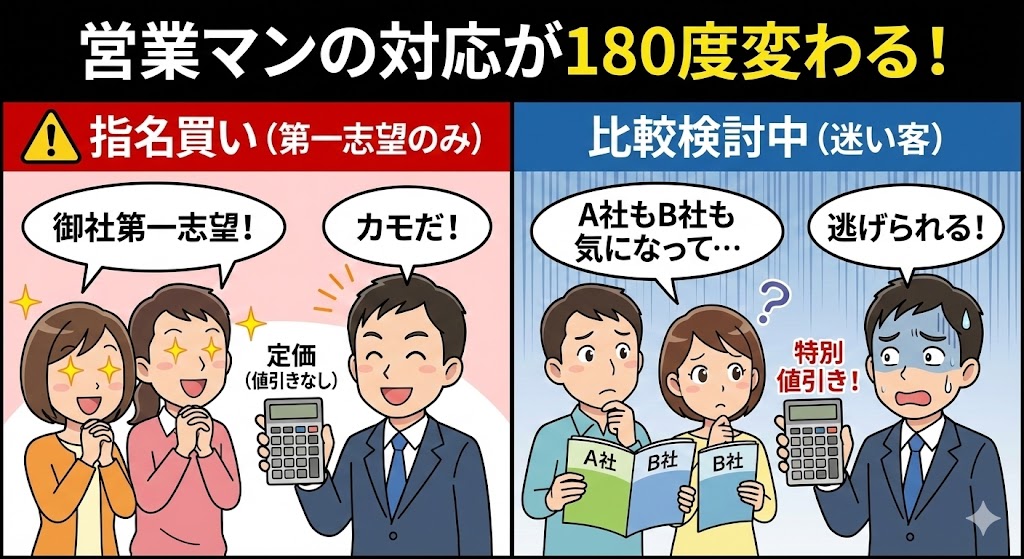 しかも、まだどのメーカーが「本命のライバル(当て馬)」になるかも分からない状態で話を聞くため、「結局、どこも良く見えて決められない」という迷子状態に陥ります。