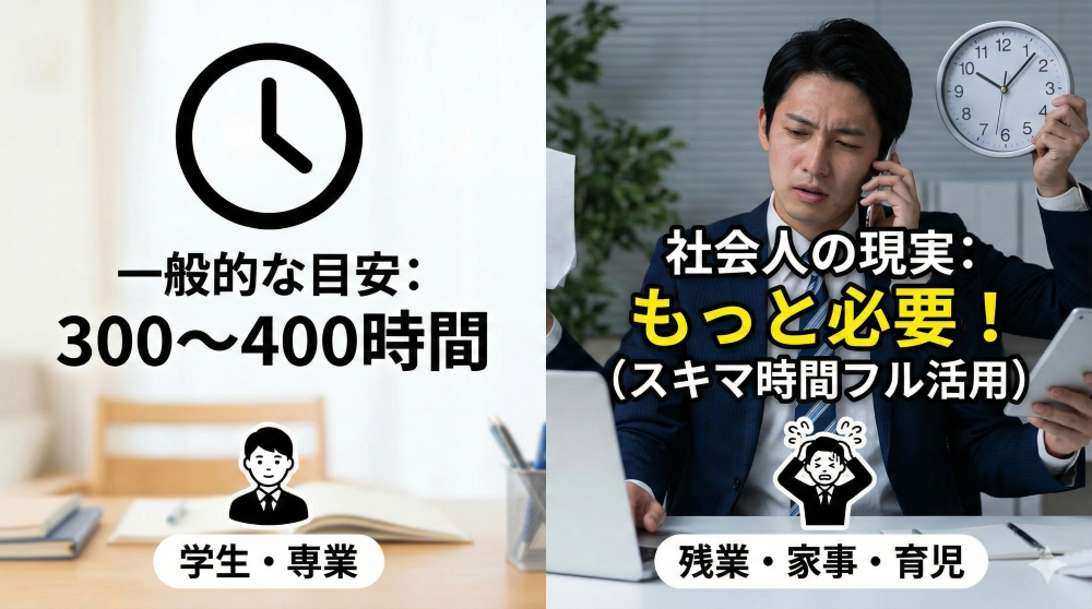 結論:宅建合格の目安は「300〜400時間」。でも社会人はもっと必要?
