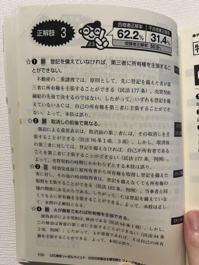 「出る順」のテキストは、とにかく情報量が凄まじいです。 本試験に出る可能性のある知識が網羅されており、判例(裁判の事例)や細かい例外規定までしっかり載っています。